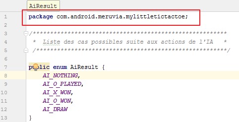 Aussi, le code du jeu Tic-Tac-Toe ne sera que survolé, ce n’est pas le but de ce tutoriel ! Bien sûr, pour ce qui est du code relatif à l’application Android, j’expliquerai son fonctionnement plus en détail. ![]()