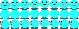 Voilà, maintenant, avant de commencer, nous aurons besoin des feuilles de sprites de nos monstres. Je vous les redonne ci-dessous, mais normalement, elles devraient déjà figurer dans le dossier graphics de votre projet (notez qu'il existe aussi une variante verte de nos monstres, mais je ne m'en suis pas servi, car ils ne rendent pas très bien sur le gazon...