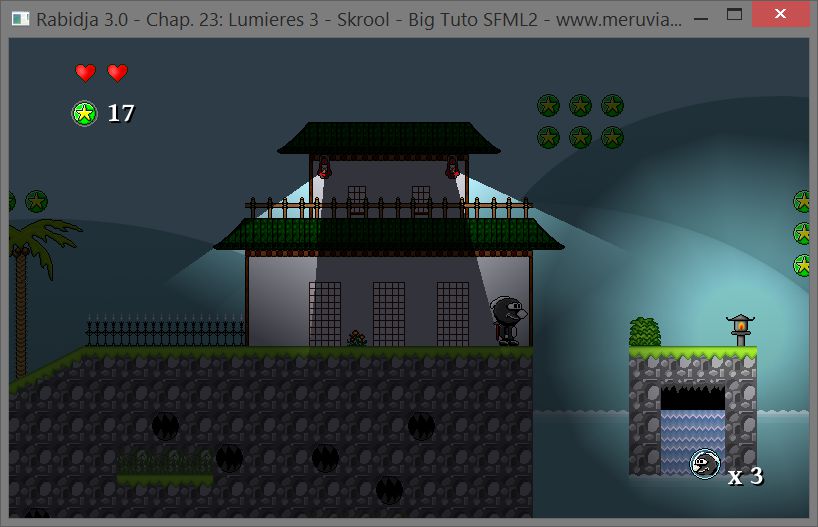 Au chapitre suivant, Skrool vous montrera comment améliorer ce système en rendant l'affichage des lumières plus doux, et en ajoutant un shader de blur (= flou en anglais). ![]()