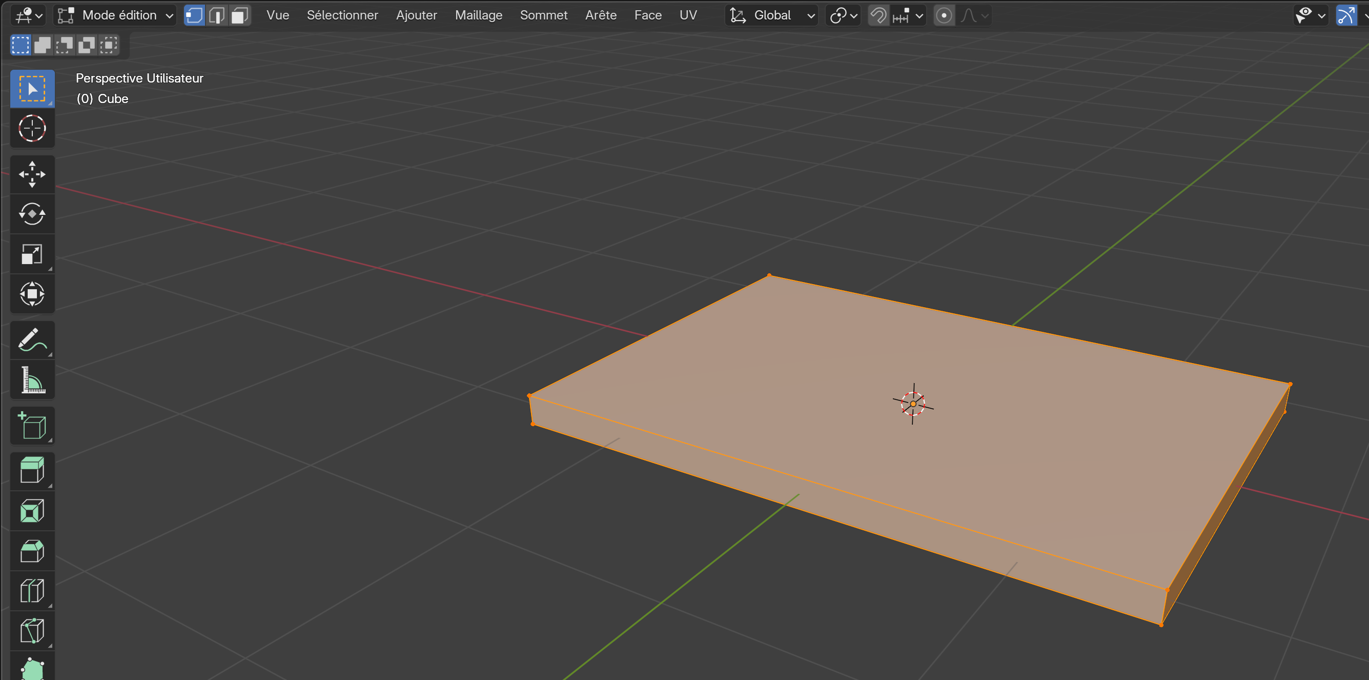 Sélectionnez le cube et redimensionnez-le pour lui donner l'apparence du dessus d'une table :
