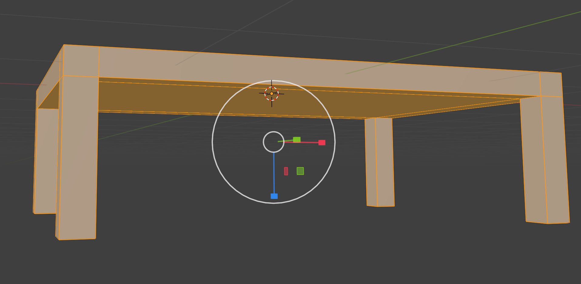 Maintenant, choisissez l'outil redimensionner et laissez suffisamment d'espace pour créer les pieds de la table (carrés en général).