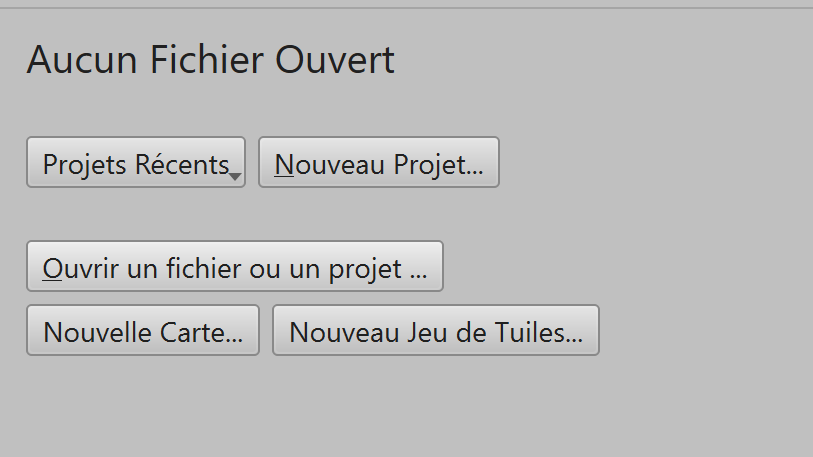 Commencez par ouvrir le logiciel Tiled en cliquant sur Tiled.exe dans le dossier Tiled (ou sur le raccourci sur votre bureau, si vous l'avez installé).