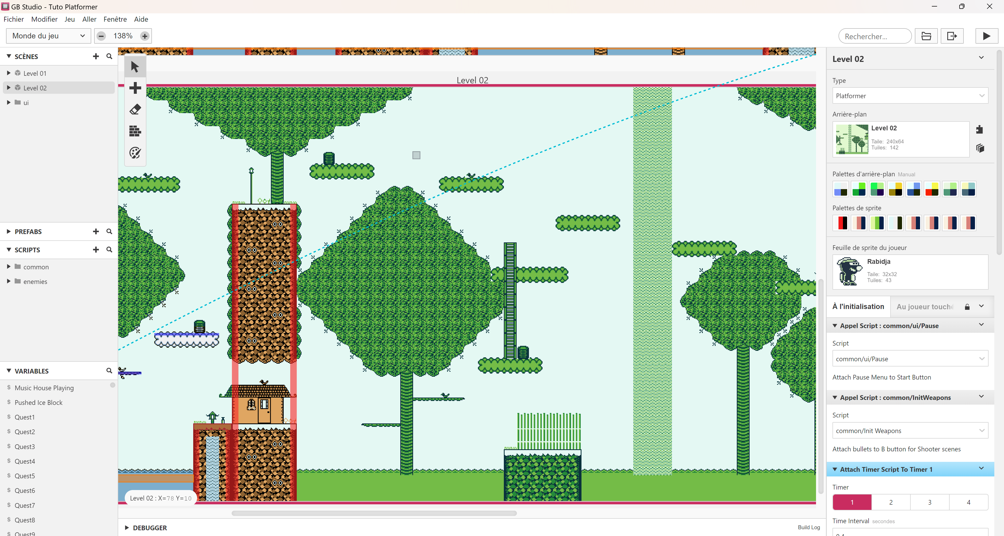 Vous pouvez maintenant rouvrir le Tuto Platformer dans GB Studio et en allant dans le niveau 2, vous verrez que votre nouveau niveau s'affiche désormais ! 😃