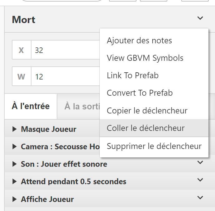 Pour le code du déclencheur, c'est juste un copier/coller de celui qui cause la mort du joueur quand il touche un Globulos. 😉