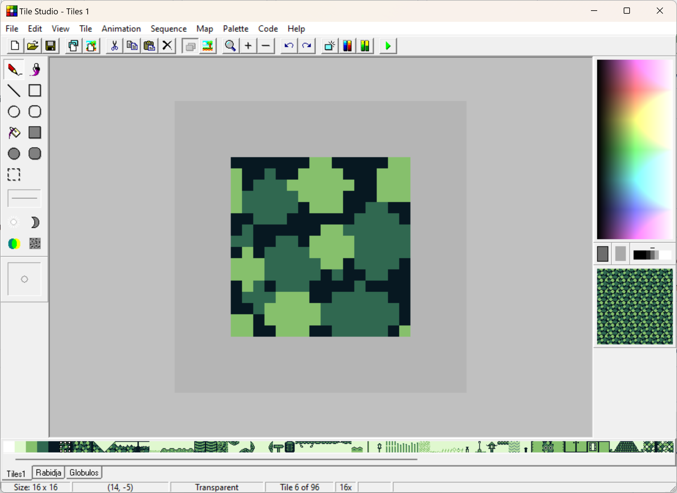 En cliquant sur chaque tile, vous pouvez la modifier en utilisant les outils de dessin classiques à gauche.