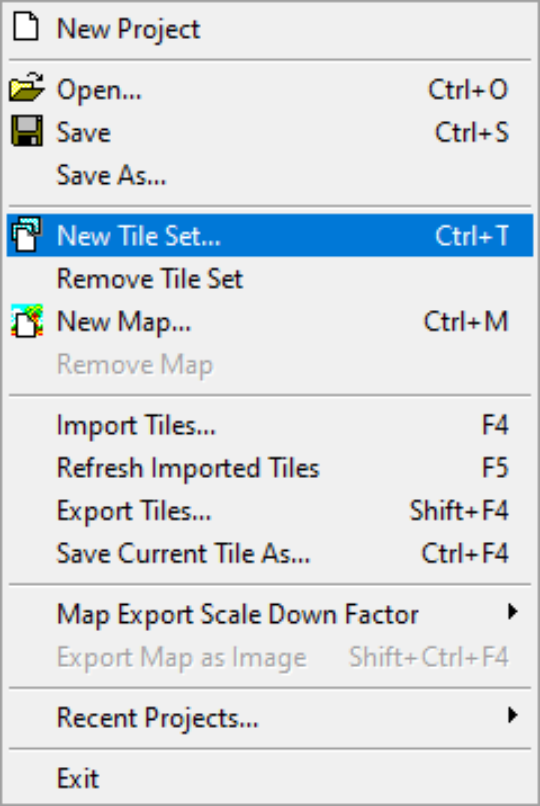 Pour cela, allez dans File et choisissez New Tile Set :