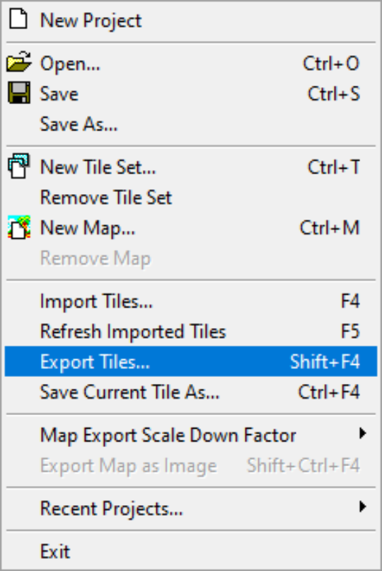 Que ce soit pour exporter un sprite ou un tileset en png, il faut aller dans File et choisir Export Tiles :
