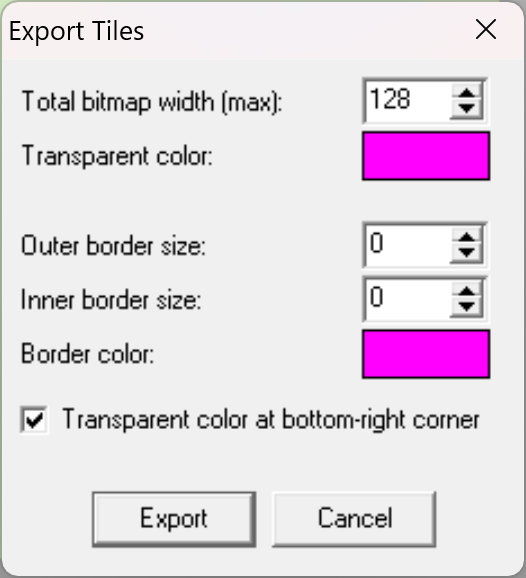 Exporter des tiles / sprites