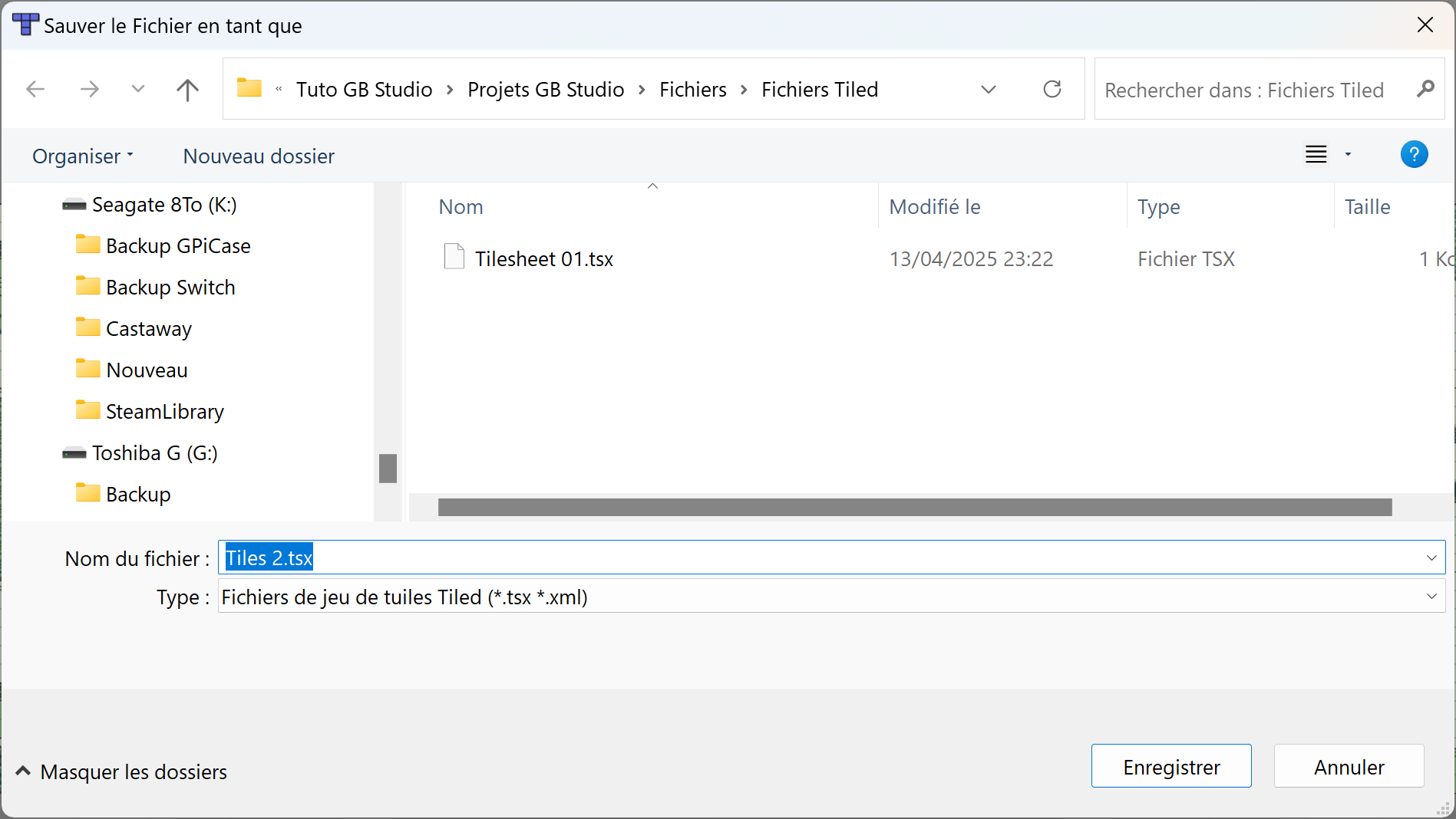 Là, donnez-lui un nom et indiquez le fichier source en png, dessiné avec Tile Studio :