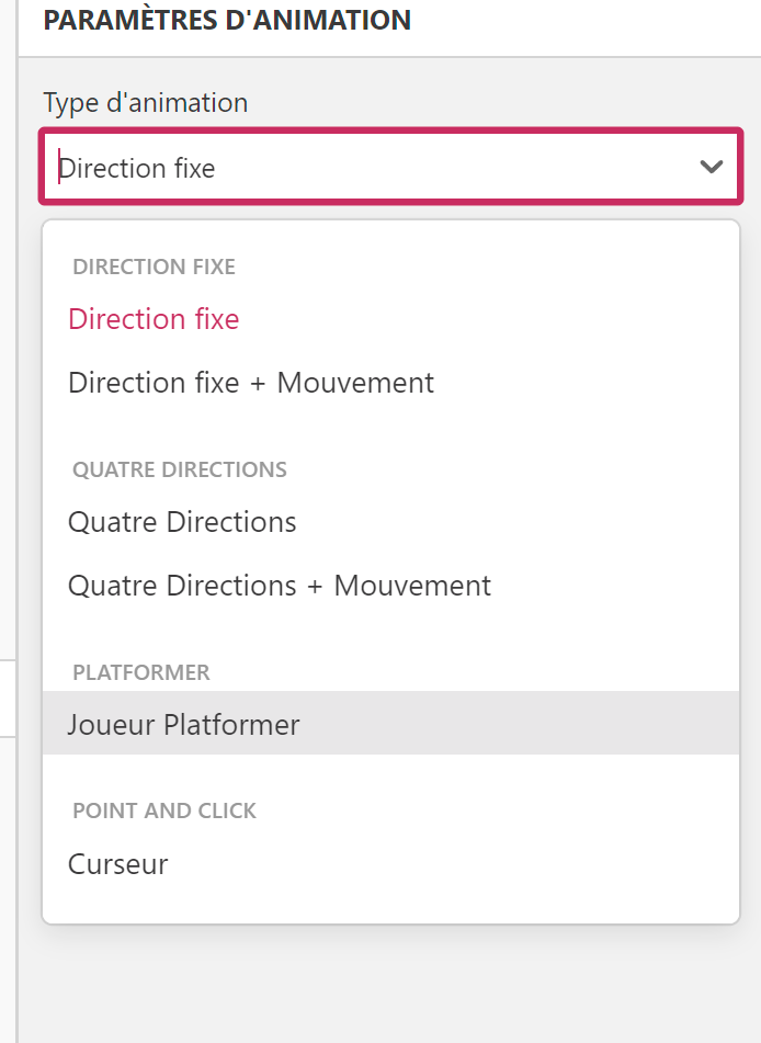 Là, pour créer un monstre de jeu de plateformes, choisissez Joueur Platformer dans le menu à droite :
