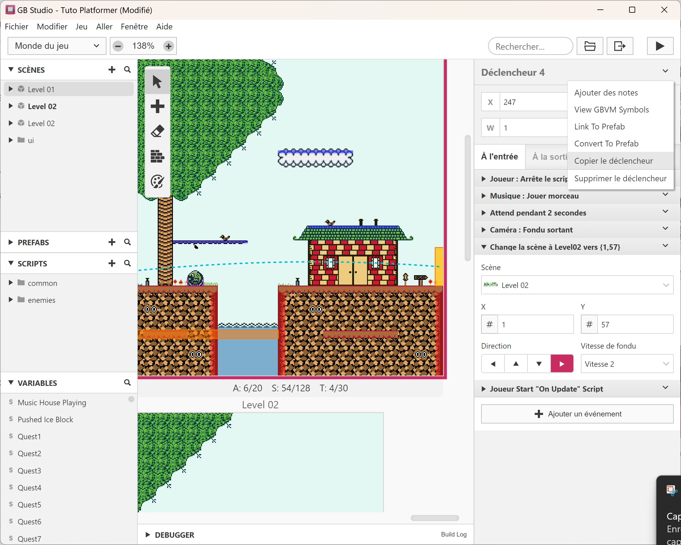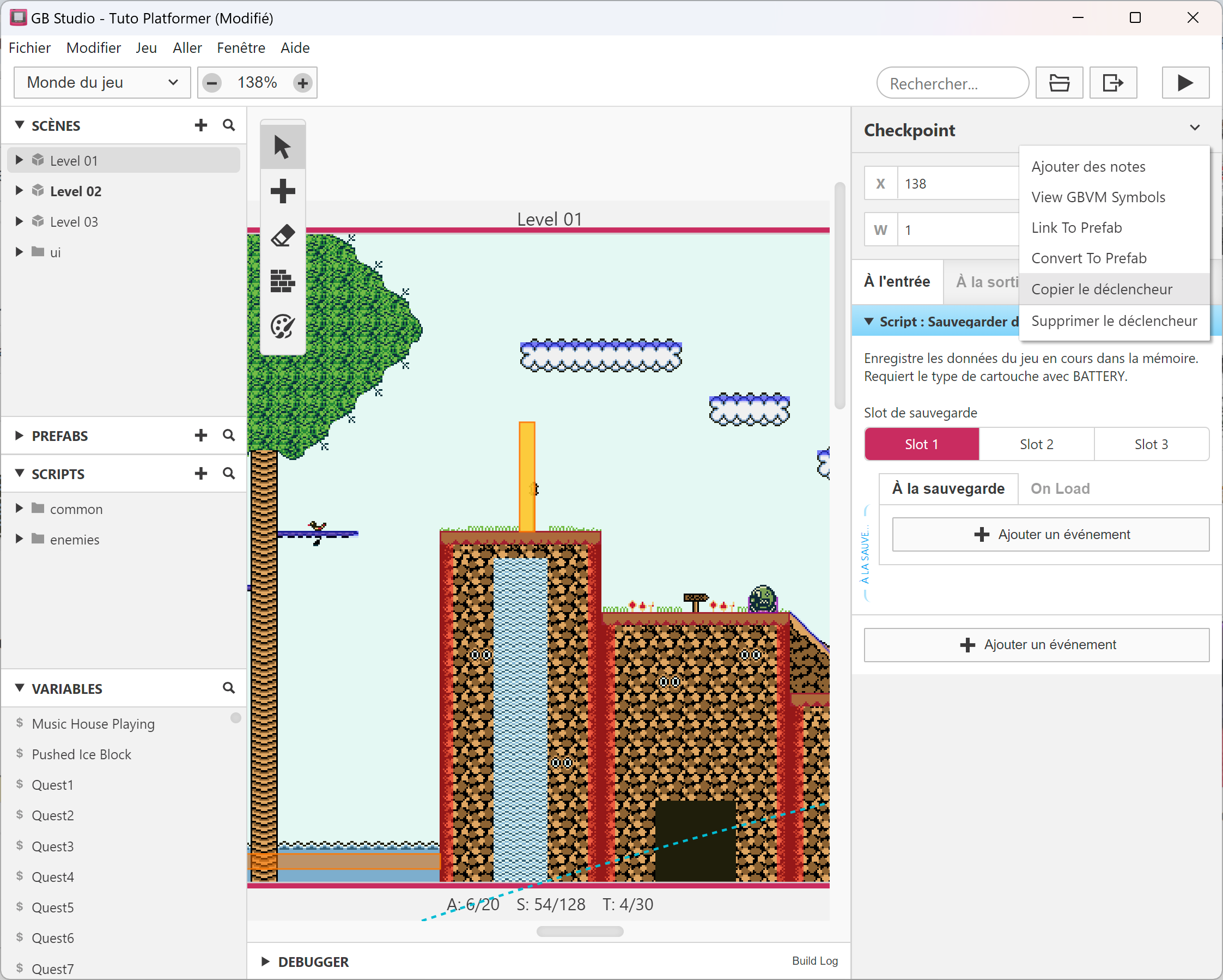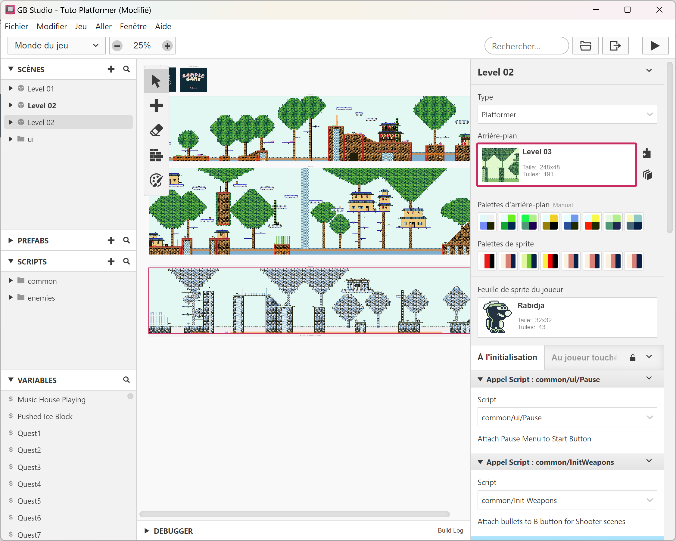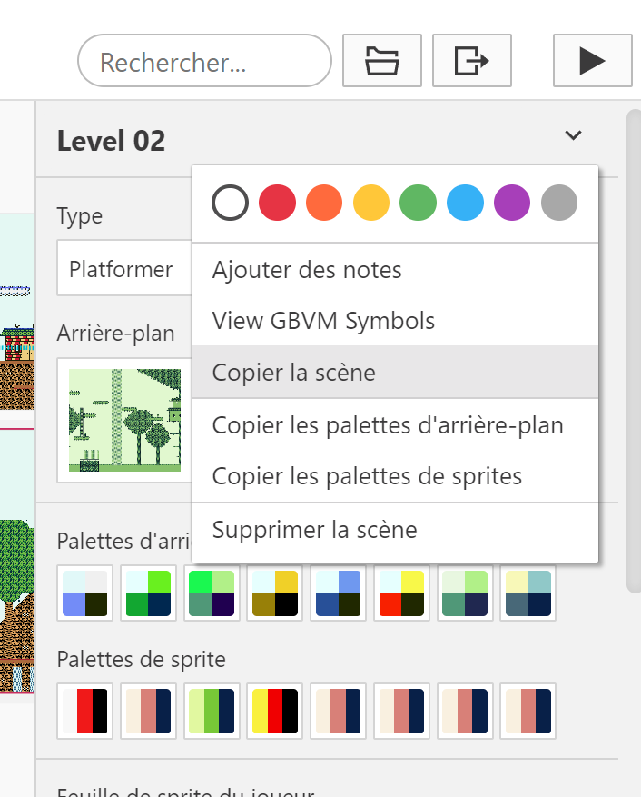 créer une nouvelle scène, ajouter une fin de niveau, un checkpoint, etc. Cela conclura les bases de GB Studio. 😉