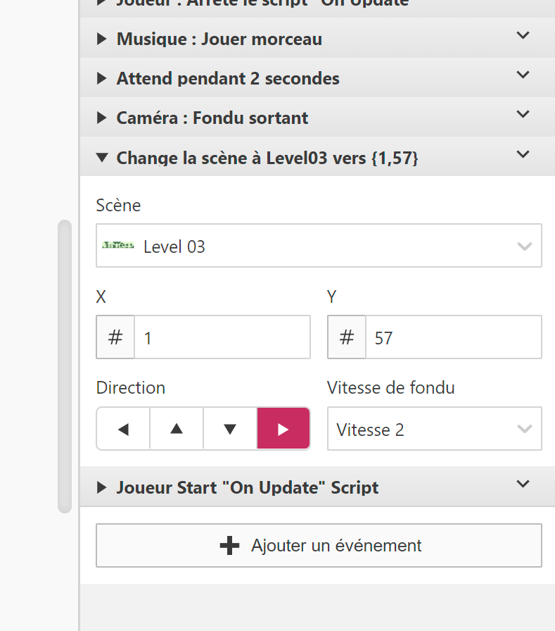 Changez la scène vers laquelle aller pour le niveau 03 :