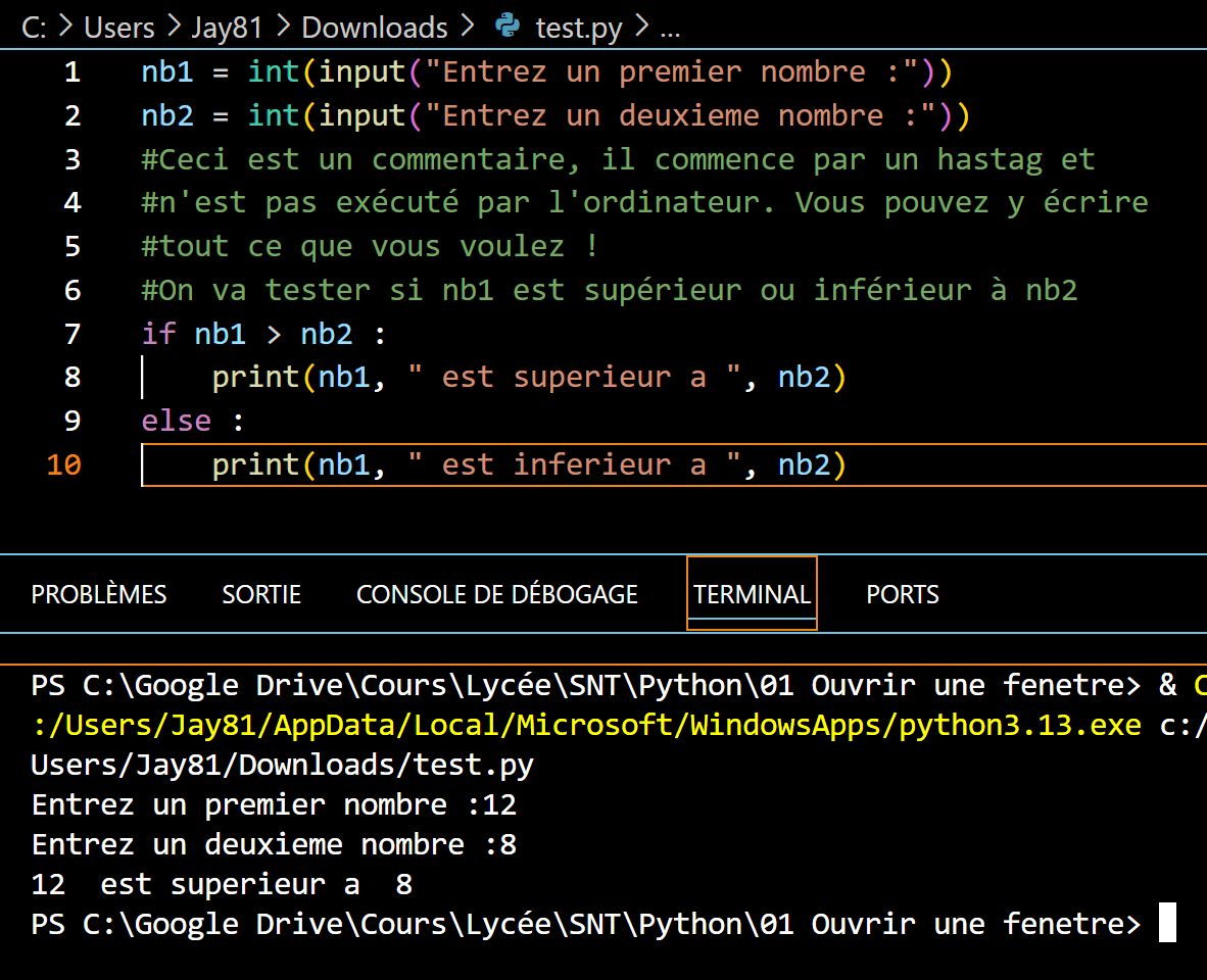 #On va tester si nb1 est supérieur ou inférieur à nb2