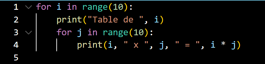 Notez qu'on a choisi un compteur j différent de celui i de la première boucle pour ne pas que les deux boucles se mélangent. 😉