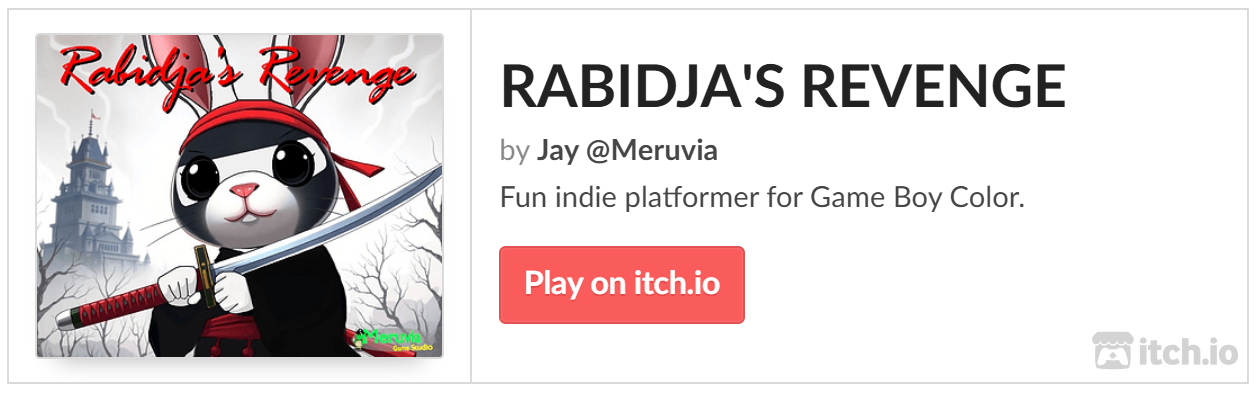 Hello everyone! Meruvia Game Studio website is now being rebuilt. All of our tutorials are back, but they are in french. We foresee to translate them in english in the near future. If you'd like to help, please contact us! 🥳 For now, you can still access them and use Google Translate which works quite well. 😉 You can also take a look at our new AAA game for the old Game Boy Color: Rabidja's Revenge! The game is really great for the system and fun! Thanks for your support! Updates: 03/03/2025: The Python course is complete! Enjoy! 03/09/2025: The C programming course is translated and up to date! See you soon for the C/SDL Tutorial! 🥳 03/22/2025: Our new game: Rabidja's Revenge is now complete and available on Game Boy (Pocket) and GBC on itch.io (see below). 10/24/2025: Our new game: Rabidja's Revenge is now available on Steam! Play the demo for free! (See link below) The funds will help keeping this site alive! |
